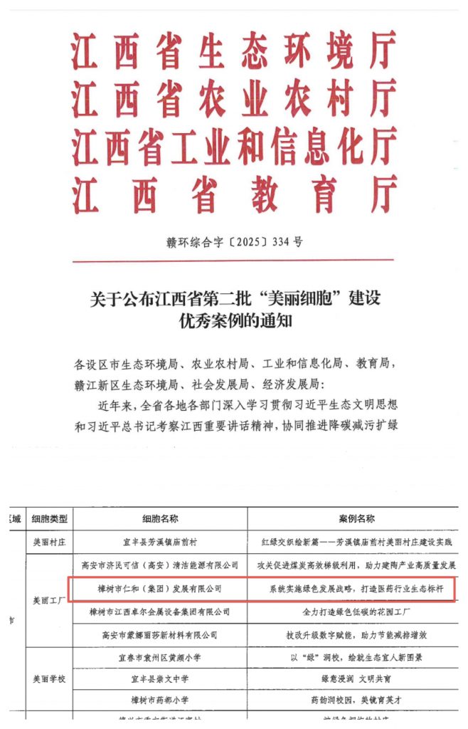 近日,江西省生態環境廳、省農業農村廳、省工業和信息化廳、省教育廳等四部門聯合公布全省第二批“美麗細胞”建設優秀案例名單,863科技園憑借系統化的綠色發展實踐和顯著的生態建設成效,成功獲評“美麗工廠”類優秀案例。這一榮譽標志著仁和集團在推進綠色制造、建設生態友好型工業園區方面取得的成果獲得省級權威認定,為區域工業綠色低碳發展提供了示范樣本。